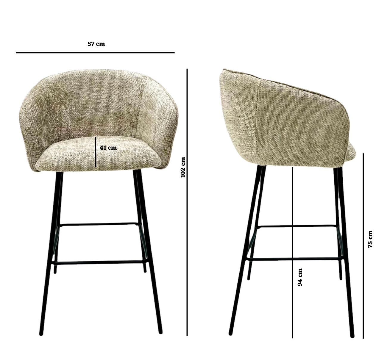 De Liza barkruk is een barkruk met luxe uitstraling! Met zijn wel bekende populaire Chenille bekleding en het zwarte metalen frame geeft hij jouw interieur de moderne stijl! De Liza is verkrijgbaar in 3 moderne kleuren!